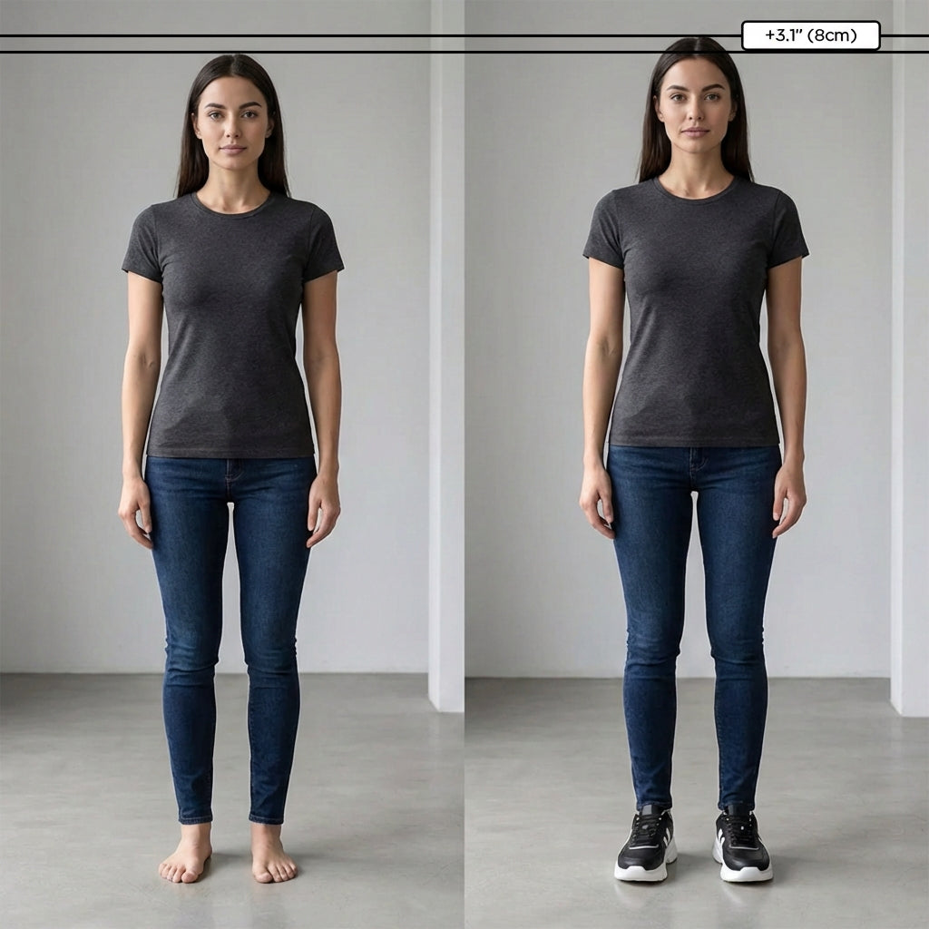 Up to 3.1 Inches taller — completely hidden inside the shoe