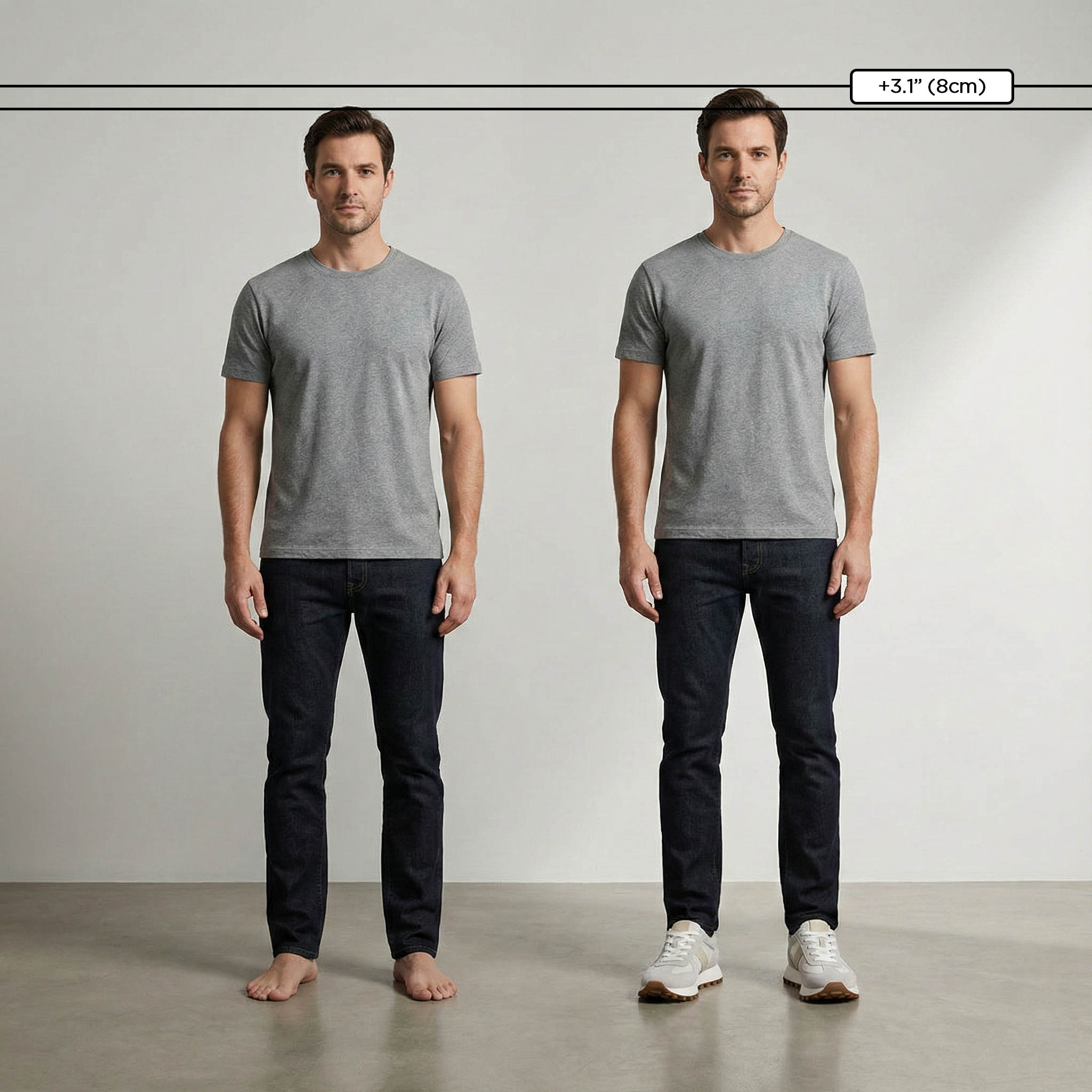 Enjoy a discreet height increase of up to 3.9 inches (10cm). The lift is completely hidden — only you know it’s there.
